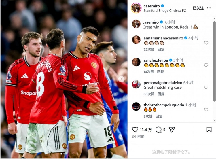 卡塞米罗社媒庆祝击败切尔西:在伦敦收获重要胜利